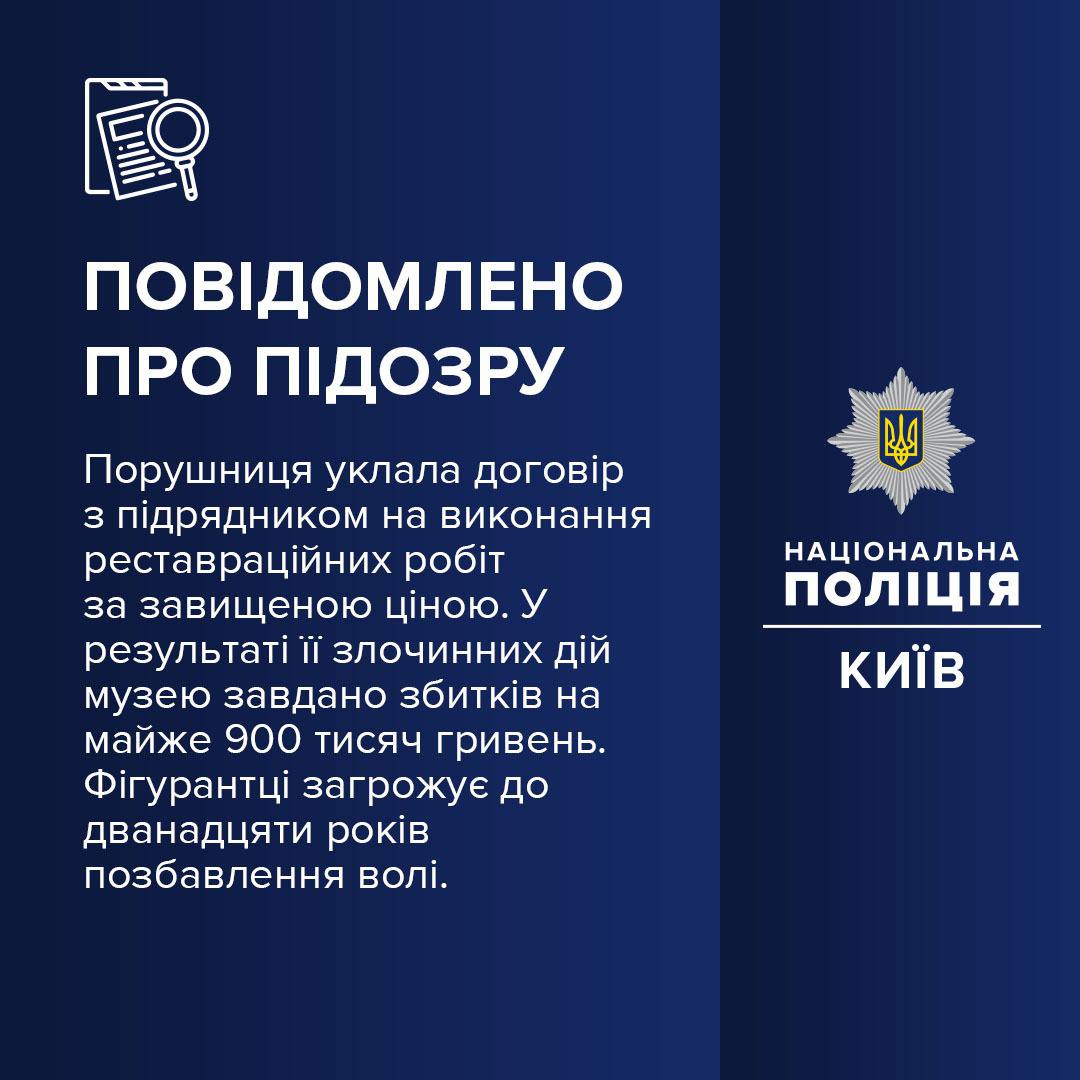 «Відтак своїми діями вона завдала збитків Національному музею на суму 868 тисяч гривень», — йдеться в повідомленні.