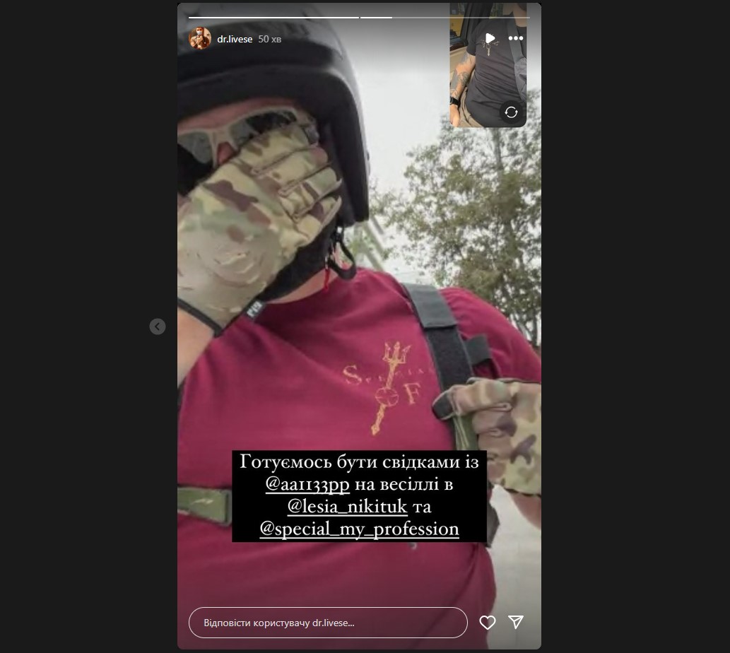 При цьому Ісенаджиєв все одно написав вже в своєму Інстаграмі в розповідях, що готується зі своїм побратимом бути свідком на весіллі Нікітюк та Ісенаджиєва.