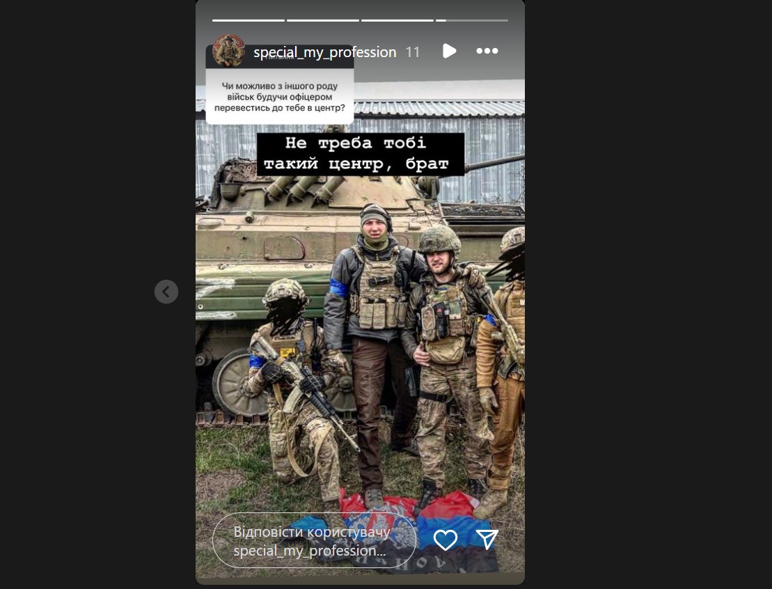 Зокрема, на запитання офіцера, як можна перевестися з іншого роду військ до Бабчука «в центр», хлопець Нікітюк відповів: «Не треба тобі такий центр, брате».