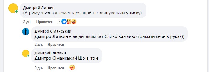 «Є люди, яким особливо важливо тримати себе в руках))» — відповів йому на це Сіманський.