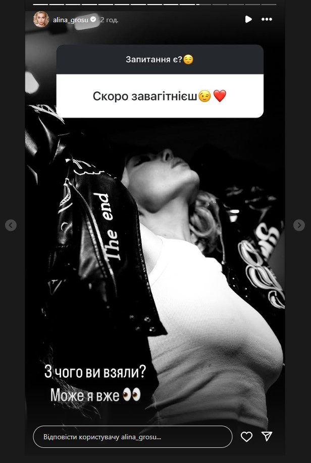 Співачка Аліна Гросу відповіла на запитання з приводу своєї можливої вагітності.