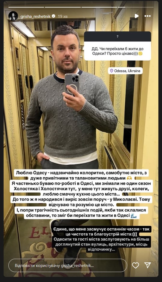 В Інстаграмі Решетніка запитали, чи переїхав би він жити до Одеси.